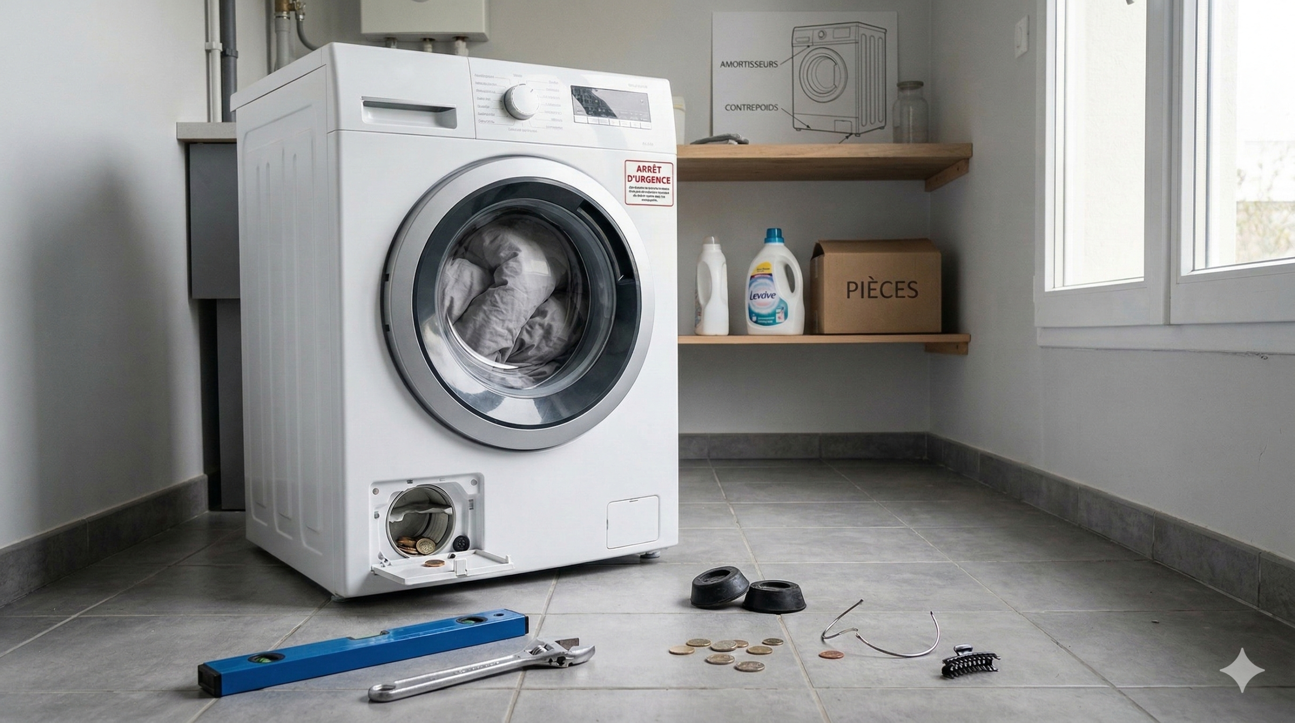 C’est la cause numéro un des bruits violents. Une machine mal de niveau transforme des vibrations normales en cognements répétés.